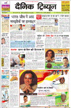 Front page of Dainik Tribune on 22 May 2013 of Haryana edition. | |