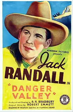 Danger Valley is a 1937 American Western film released by Monogram Pictures, directed by Robert N. Bradbury, written by Robert Emmett Tansey (as "Robert Emmett") and starring Addison Randall (credited as "Jack Randall") as a singing cowboy.