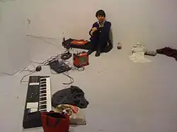 Vecchio Merda Danzband performance with Daniella Isamit Morales during a FRAC exhibition at the Pistoletto Foundation in Italy, 2012. | |