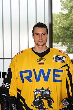 Danijel Kovacic (born July 3, 1987) is a German professional ice hockey goaltender. He is currently playing for Krefeld Pinguine in the Deutsche Eishockey Liga (DEL).[1]