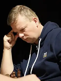During his career, Dariusz Mikrut advanced to the finals of the Polish Junior Chess Championships three times. In 1997 in Jarosławiec he achieved the best result on the 1st board during the Polish Junior Team Chess Championships (scoring 9½ points in 10 games). In 2001, starting in the colors of the club ZKS Zelmer Rzeszów, Dariusz Mikrut won a bronze medal in Brzeg Dolny Polish Team Blitz Chess Championship.[1] A year later, he took the 1st place in the international chess tournament in Rzeszów and took the 3rd place in the Slovakia Open Chess Championship in Prešov. In 2002 he took the 1st place in Frýdek-Místek. In 2006 he won swiss-system tournaments in Dobczyce and Liberec and took 2nd place in Orlová. In Józef Dominik's memorial in Dobczyce Dariusz Mikrut also triumphed in 2007 and 2008. In 2009, he shared the 2nd place (after Piotr Brodowski, together with, among others, Mirosław Grabarczyk) in Kowalewo Pomorskie. In 2013, he shared the 1st place (together with Artur Jakubiec) in the International Małopolska Chess Championship.[2] In 2016, he repeatedly won bronze medal in Polish Team Blitz Chess Championship.[3] Dariusz Mikrut seven times participated in Polish Team Chess Championship with chess clubs ZKS Zelmer Rzeszów and TS Wisła Kraków (1998, 2002-2003, 2014-2017).[4] In Slovak Chess Extraliga with chess club ŠK Prakovce he won individual gold (2017) and silver (2016) medals.[5]