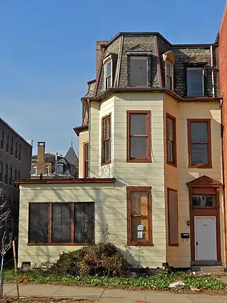 The David Bachrach House, also known as Gertrude Stein House, is a historic home located at Baltimore, Maryland, United States. It is a late 19th-century Victorian style frame structure consisting of two stories plus a mansard roof in height. It was constructed about 1886 and occupied by David Bachrach (1845-1921), a commercial photographer who figures prominently in the annals of American photographic history. Also on the property is a one-story brick building on a high foundation that was built for Ephraim Keyser (1850-1937) as a sculpture studio about 1890 and a one-story brick stable. Ephraim Keyser and Fannie (Keyser) Bachrach were brother and sister. Gertrude Stein (1874-1946) was a niece of Mrs. David Bachrach [Fannie (Keyser) Bachrach] and lived in this house for a short time in 1892.[2]