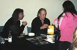 Carradine co-produced a full-length documentary about luthier Stuart Mossman, which has been identified as the actor's last film appearance.[88] The Legend of Stuart Mossman: A Modern Stradivari, directed by Barry Brown, premiered at the Santa Barbara International Film Festival, in February 2010.[89] It featured David, Keith, and Robert Carradine performing their music on Mossman guitars. Mossman had appeared with Carradine in Cloud Dancer (1980), which Brown also directed, and in The Long Riders.[88] On the small screen, Carradine appeared in a guest spot on the television series Mental that was broadcast just days after his death. On October 3, 2009, Celebrity Ghost Stories premiered on the Biography Channel with an interview of Carradine discussing his belief that his closet was haunted by his wife's deceased previous husband. The segment, which was described as "eerie", was filmed four months before his own death.[90]