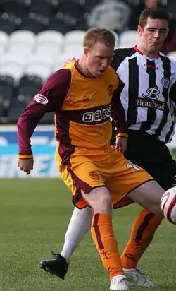 Born in Bellshill, Scotland, Clarkson made his debut for local club Motherwell in December 2002, scoring his first goal nine minutes into his first starting appearance for the club, at home in an SPL match against Partick Thistle on 2 January 2003.[2] Clarkson went on to score three goals in his first season, and was a regular from the following season, playing in the majority of matches. He scored 13 goals for Motherwell in the 2007–08 season, during which his uncle, Phil O'Donnell, collapsed and later died from heart failure during a match against Dundee United. Clarkson was later voted player of the year.[3] Clarkson went on to wear O'Donnell's old squad number, 10, during the 2008–09 season.