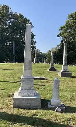 Wallace died suddenly, without having been ill, on September 4, 1859, in Indianapolis, Indiana and is buried in Crown Hill Cemetery.[11]