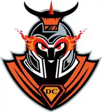 In May 2010, the team unveiled their logo and uniform. Designed by a Dawson Creek resident, it featured predominately orange, black, and silver colours stylized as a warrior helmet. The logo was meant to illustrate the team's dominance with the burning eyes representing the rage within.[64] Between seasons, they altered the logo by adding the words "Dawson Creek" and "Rage" with the Canadian maple leaf symbol, replacing the longhorn symbol with a plume on the helmet, eliminating the red colouring, and removing the flames.[65]