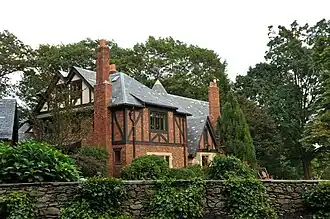 The Day Estate Historic District encompasses part of a subdivided estate at the corner of Commonwealth Avenue and Dartmouth Street in Newton, Massachusetts, United States. The district is bounded by Commonwealth, Dartmouth, Chestnut, and Prince Streets, and includes six houses located on Commonwealth and Dartmouth. It was originally owned by Henry Day, a banker, who in 1896 built the house at 321 Chestnut Street. The block was subdivided during a building boom in the 1920s, and the new houses were built between 1928 and 1930. All six houses are high quality Tudor Revival structures, five of them designed by William J. Freethey. Day's estate house (not a part of the district) is now home to the All Newton Music School, and the rest of the northeastern portion of the estate has more modern construction.[2] The district was listed on the National Register of Historic Places in 1990.[1]