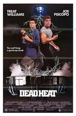 Dead Heat is a 1988 American buddy cop action zombie comedy film directed by Mark Goldblatt and starring Treat Williams, Joe Piscopo, Darren McGavin, Lindsay Frost and Vincent Price.[2] The film is about an LAPD police officer who is murdered while attempting to arrest zombies who have been reanimated by the head of Dante Laboratories in order to carry out violent armed robberies, and decides to get revenge with the help of his former partner.