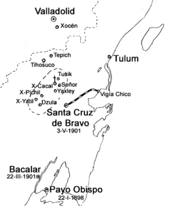 Between 1905 and 1912, the Mayas carried out continuous harassment and attacks on the military railway. When General Ignacio A. Bravo (1837–1918) was expelled from Santa Cruz, the Mayas began to destroy the railway. In 1913, the governor of the territory, General Arturo Gracilazo Juárez, ordered its reconstruction.
