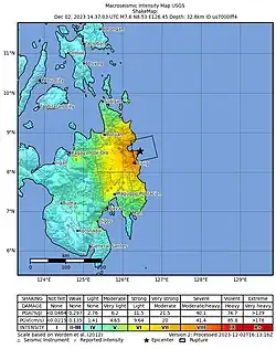 - ^ a b National Earthquake Information Center (December 2, 2023). "M 7.6 – Mindanao, Philippines". United States Geological Survey. Archived from the original on December 2, 2023. Retrieved December 2, 2023.