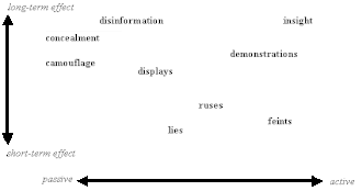 Spectrum of deception types, including: disinformation, concealment, camouflage, demonstrations, and feints.