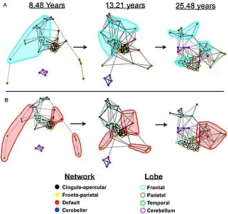 - ^ Fair, D. A.; Cohen, A. L.; Dosenbach, N. U. F.; Church, J. A.; Miezin, F. M.; Barch, D. M.; Raichle, M. E.; Petersen, S. E.; Schlaggar, B. L. (2008). "The maturing architecture of the brain's default network". Proceedings of the National Academy of Sciences. 105 (10): 4028–32. Bibcode:2008PNAS..105.4028F. doi:10.1073/pnas.0800376105. PMC 2268790. PMID 18322013.