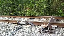 A column of cones sits across the whole width of the railroad (just like a cross tie) attached to a switch. Anything dragging from the train will hit this cone, thus pushing it back, thus breaking a contact. It then returns to its normal position to prepare for anything else that might be dragging under the train. The detector will register this action and flag it as a defect. Brittle bars are still used elsewhere, but have to be repaired. Over time, dragging equipment detector's metal flaps need to be replaced because of extensive damage to them.[3]