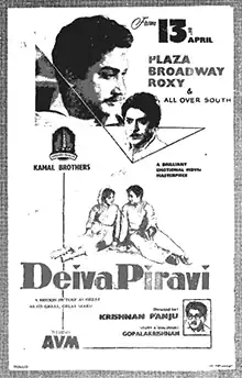 - ^ "Deiva Piravi". The Indian Express. 13 April 1960. p. 1. Retrieved 30 August 2019 – via Google News Archive.
