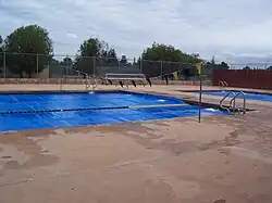 The large and small gyms, locker rooms, and swimming pool, on the south side of the quad, are also original. The big gym, home to basketball, volleyball, badminton, and several families of small birds which build nests in the old lights in the ceiling, received a new paint job in 2006 courtesy of the Don's Club. The pool deck has two pools, the 12-foot diving well and the 6-lane pool, which is 3.5 feet at the ends and 4 in the middle. Water polo cannot be played at Del Mar because of the pool's depth, or lack thereof. There are seven tennis courts, four outdoor basketball courts, two sand volleyball courts that are rarely used, the weight room, a football practice field, a baseball diamond, three softball/baseball fields, and a large field that houses soccer. There is also the Bowl, housing the brand new artificial-turf athletic field and appropriately new rubber track which is used for field hockey, soccer, and football.[19]