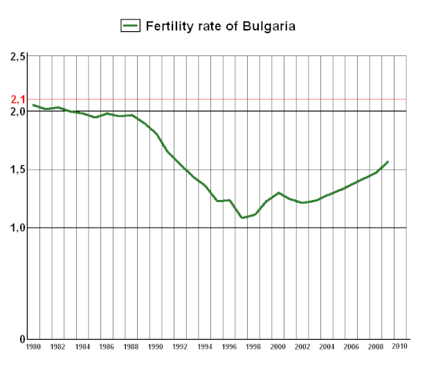 - ^ "Total fertility rate by statistical regions, districts and place of residence - National statistical institute". www.nsi.bg. Archived from the original on 20 March 2018. Retrieved 28 January 2018.