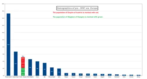 KINGDOM OF HUNGARY | 9,944,627 (54.4%) | 1,903,357 (10.4%) | 1,946,357 (10.7%) | 2,948,186 (16.1%) | 464,270 (2.5%) | 194,808 (1.1%) | 461,516 (2.5%) | 401,412 (2.2%) | 18,264,533 (87.4%) | |