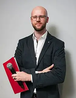 ![]() Deniss Čalovskis at the 2018 data security forum "Digitala era" | |