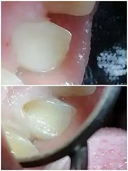 34. ^ Moncada G, Martin J, Fernandez E, Hempel MC, Mjor IA, Gordan VV (2009). "Sealing, refurbishment and repair of Class I and Class II defective restorations: a three-year clinical trial". J Am Dent Assoc. 140 (4): 425–32. doi:10.14219/jada.archive.2009.0191. PMID 19339531.