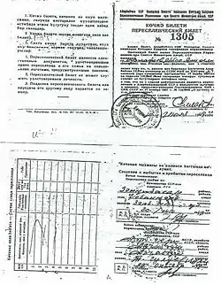 The deportation's details were also defined in the Decree of the Council of Ministers of the USSR No. 754.[16] The migrants, according to this decision, were to be allocated their part of the collective farm movable property and be provided the free transportation of this property to their new place of residence. The cost of the movable property left on the territory of Armenia was to be paid to the collective farms at the place of the new resettlement of these Azerbaijanis. The settlers were provided with some benefits, and also issued non-refundable cash benefits in the amount of 1,000 rubles for the head of the family and 300 rubles for each family member. The Council of Ministers of the Armenian SSR pledged to provide assistance to the migrants in the sale of their houses belonging to the places of their exit.
