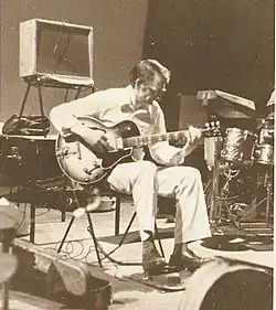Throughout both his commercial and improvising careers, Bailey's principal guitar was a 1963 Gibson ES 175 model.[9] Although he occasionally made use of prepared guitar in the 1970s (he would, for example, put paper clips on the strings, wrap his instruments in chains, or add further strings to the guitar), often for Dadaist/theatrical effect, by the end of that decade he had, in his own words, "dumped" such methods.[10] Bailey argued that his approach to music-making was actually far more orthodox than that of performers such as Keith Rowe of the improvising collective AMM, who treats the guitar purely as a "sound source" rather than as a musical instrument. Instead, Bailey preferred to "look for whatever 'effects' I might need through technique".[10]