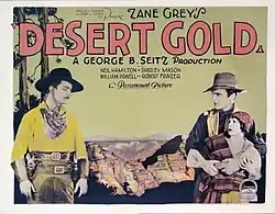 Desert Gold is a 1926 American silent Western film directed by George B. Seitz. According to silentera.com the film survives while Arne Andersen Lost Film Files has it as a lost film.[2][3] Portions of the film were shot near Palm Springs, California.[4]: 168–71 It is based on the 1913 novel of the same name by Zane Grey.