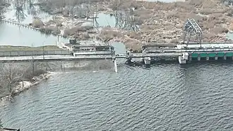 ![]() The destroyed dam on the Irpin River in the village of Kozarovichi | |