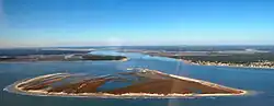 Deveaux Bank is a horseshoe-shaped sand spit island encompassing a 215-acre (87-hectare) bird sanctuary at the mouth of the North Edisto River in Charleston County, South Carolina.[1] It is located on the Atlantic Coast between Edisto Island, South Carolina and Seabrook Island, South Carolina. Its average elevation is three feet.[2] It has approximately 2.75 miles (4.43 kilometres) of sandy beaches on four sides (some of which are completely submerged at high tides) and a tidal dragon on the side facing the mainland.