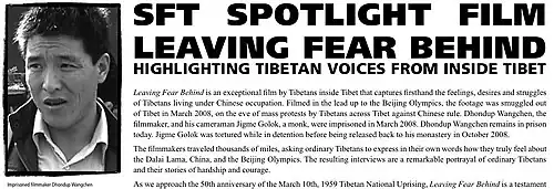 - ^ Wangchen, Dhondup (15 April 2017). "Filming for Tibet". www.leavingfearbehind.com. Archived from the original on 25 January 2017. Retrieved 15 April 2017.