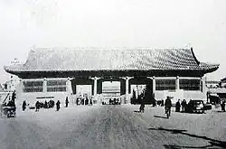 Di'anmen (traditional Chinese: 地安門; simplified Chinese: 地安门), previously Bei'anmen (and commonly known as the "back gate"), was an imperial gate in Beijing, China. The gate was first built in the Yongle period of the Ming dynasty, and served as the main northern gate to the Imperial City (the southern gate is the much more famed Tiananmen). The gate was located north of Jingshan Park and south of the Drum Tower. The gate was demolished in 1954. Efforts to restore it have been under way since 2013.