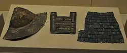 Iaroslav Lebedynsky and Victor H. Mair speculate that some Sakas may also have migrated to the area of Yunnan in southern China following their expulsion by the Yuezhi in the 2nd century BCE. Excavations of the prehistoric art of the Dian civilization of Yunnan have revealed hunting scenes similar to that of Indo-European artwork depicting horsemen in Central Asian clothing.[22] Horsemen practicing hunting are depicted in circular arrangement on top of drums, a design often encountered in Scythian art. Animal scenes of felines attacking oxen are also at times reminiscent of Scythian art both in theme and in composition.[23] These objects reflect the influence of steppe art.[24]