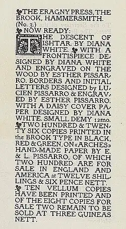 - ^ Pissarro, Lucien; White, Diana; Pissarro, Esther (1903). The descent of Ishtar. London : Eragny Press; New York : John Lane.