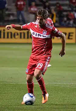 In February 2011, Chaves signed with Chicago Fire of Major League Soccer.[4] He made his debut, and scored his first goal for his new club, 19 March 2011 in Chicago's 1–1 tie with FC Dallas on the opening day of the 2011 MLS season.[5] Chaves went on to score in each of his next two matches, a 3–2 win vs. Sporting Kansas City 26 March 2011 and a 2–1 loss at Seattle Sounders F.C. 9 April 2011 to become the first player in club history to record goals in each of his first three league appearances for the team. Chaves would finish the 2011 campaign with seven goals and three assists across all competitions, helping the team to its first appearance in the Lamar Hunt U.S. Open Cup final since 2006 where they eventually fell 2–0 at Seattle.