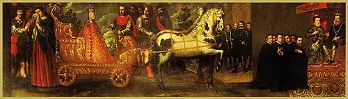Among his first works, the canvases he painted for the altarpiece of the Church of the Holy Cross, in Medina de Rioseco, dedicated to the life of Emperor Constantine, around 1666, stand out.[5]