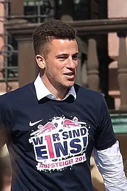 At the start of the 2015–16 season, however, Demme suffered an injury during training and missed the opening game of the season.[44] He then made his return from injury in a follow-up match against Greuther Fürth on 3 August 2015, coming on as a late substitute, in a 2–2 draw.[45] After appearing on the substitute bench in a number of matches, Demme soon regained his first team place, due to the club's shortage of midfielders.[46] He then established himself in the starting eleven for the side, in the midfield position[47] and helped the club gain promotion to the Bundesliga after beating Karlsruher SC 2–0 on 8 May 2016.[48] Despite being sidelined during the 2015–16 season,[49] Demme went on to make a total of 28 appearances in all competitions.