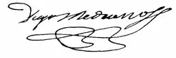 On 25 February 1835 Her Majesty the Governing Queen issued a Royal Decree granting Don Diego de Medrano "the grace and authority that your predecessors also obtained to use the partial signature 'Medrano' on all documents that you issue for Spain and the Indies"[9] as Minister of the Interior, except where the Queen's own signature is required or where full signatures are customary.[9]