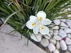 Dietes robinsoniana, the Lord Howe wedding lily, is found naturally only on Lord Howe Island, Australia.[2] It grows on cliff faces, often in exposed locations. It is also Found on forest margins and the tops of Mount Gower and Mount Lidgbird and behind the beaches on Lord Howe Island. It is one of the world's most intriguing and remarkable biogeographic disjunctions, with its nearest phylogenetic relatives occurring in Africa.[3]