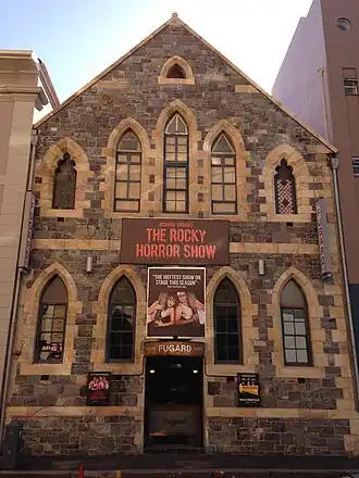 Following the Laurence Olivier Award-winning revival of The Magic Flute, starring South African performers of Mark Dornford-May's Isango Portobello, Eric Abraham wanted to create a space in Cape Town to house South African talent.[2] Abraham underwrote the construction of the theatre, naming it after playwright Athol Fugard. Developed with Dornford-May and Mannie Manim, Rennie Scurr Adendorff began renovating the National Heritage listed neo-Gothic Congregational Church Hall and two former warehouses, including the Sacks Futeran building, in September 2009.[3][4]