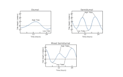A semi-diurnal cycle refers to a pattern that occurs about every twelve hours or about twice a day. Often these can be related to lunar tides, in which case the interval is closer to 12 hours and 25 minutes.
