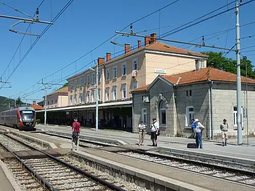 Divača railway station (Slovene: Železniška postaja Divača) is a significant railway station in Divača, Slovenia. It was opened in 1857, and is located close to the Italian border, on the main railway line between Ljubljana, Slovenia and Trieste, Italy.