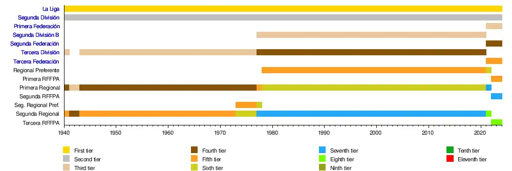 - Primera Asturfútbol, formerly Regional Preferente de Asturias and Primera RFFPA (Level 6 of the Spanish football pyramid)