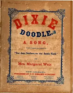 Dixie Doodle is a parody of Yankee Doodle in the South at the time of the American Civil War. It was written in 1862 by Margaret Weir, published in New Orleans, and dedicated to "our dear Soldiers on the Battle Field".[1]