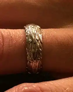 Together with the doctoral hat or laurel wreath, it forms part of the academic regalia in Sweden.[2] Swedish doctoral rings are made of gold, either standard or white gold, and in a design specific to the conferring faculty. While the doctoral hat or laurel wreath has no use outside academic events, the ring is intended to be worn daily and is typically worn on the ring finger of the left hand.