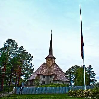 Dombås Church (Norwegian: Dombås kirke) is a parish church of the Church of Norway in Dovre Municipality in Innlandet county, Norway. It is located in the village of Dombås. It is one of the two churches for the Dombås parish which is part of the Nord-Gudbrandsdal prosti (deanery) in the Diocese of Hamar. The gray, stone church was built in an cruciform design in 1939 using plans drawn up by the architects Magnus and Espen Poulsson. The church seats about 300 people.[1][2]