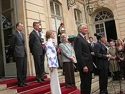 Contrary to what his surname suggests, Villepin is not from an aristocratic background. His ancestors added the particle "de" to the family name.[8] His great-grandfather was a colonel in the French army, his grandfather was a board member for several companies, and his father Xavier de Villepin was a diplomat and a member of the Senate. Villepin speaks French, English and Spanish.