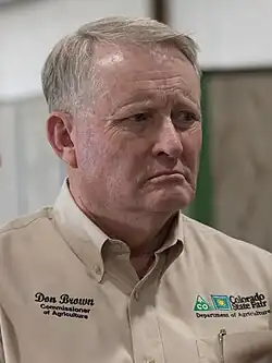 Don Brown (born December 29, 1954) is an American politician, farmer, and businessman who served as the commissioner of the Colorado Department of Agriculture from 2015 to 2018. Brown is a third generation farmer from Yuma County, Colorado. During his tenure as Commissioner of Agriculture, he spearheaded the agriculture extension for the Colorado Crisis Hotline.