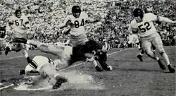 The 1950 Wolverines then advanced to the Rose Bowl where they beat the previously undefeated University of California Bears (9–0–1) by a score of 14–6. Michigan was held scoreless and trailed 6–0 after three quarters, but Dufek took over in the fourth quarter. Dufek ran for 113 yards in the game and scored two touchdowns in the final six minutes of the game.[4] Dufek was named MVP of the 1951 Rose Bowl game and was selected by the Chicago Bears in the 17th round of the 1951 NFL draft.