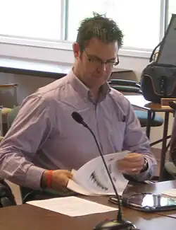 McRae spent seven years on the Courtenay city council. He was first elected in November 2002 and was re-elected in 2005 and 2008. While on council he voted against allowing businesses to stay open late-night,[4][5] supported surveillance cameras in public areas,[6] and led an initiative to rename streets after specific, locally-significant people.[7] He also supported work at establishing a walking/cycling trail across the Comox Valley, from the Town of Comox to Comox Lake.[8] He was appointed to the Comox-Strathcona Regional District board of directors in 2006.[9] As one of Courtenay's two Regional Directors, he supported the Vancouver Island Health Authority's controversial attempt to build a new regional hospital near Dove Creek,[10] but he later supported a compromised position that would see a new hospital built in the Comox Valley with the Campbell River hospital remaining open for emergency and acute care.[11] McRae disliked how the Comox-Strathcona Regional District operated, calling the urban-rural voting blocks "dysfunctional".[12][13] He favoured an amalgamation of Courtenay, Cumberland, Comox, and several electoral areas to form a new regional government.[14] McRae welcomed the province's move to split the Regional District (creating the Comox Valley Regional District and the Strathcona Regional District),[15] and even supported a proposal to include the Comox Indian Band on the Comox Valley Regional District's Board of Directors.[16]