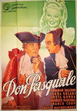 Don Pasquale is a 1940 Italian comedy film directed by Camillo Mastrocinque and starring Armando Falconi, Laura Solari and Maurizio D'Ancora. It is loosely based on Giovanni Ruffini's libretto for Gaetano Donizetti's opera buffa Don Pasquale.[1][2] It was screened at the 8th Venice International Film Festival.[1][2]