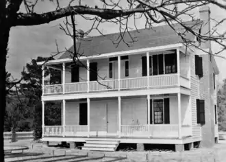 Donald Bruce House, also known as Middlepen Plantation, is a historic plantation home located near Orangeburg, Orangeburg County, South Carolina. It was originally built during the 18th century in downtown Orangeburg and was moved to Middlepen Plantation about 1837. The house is a two-story frame structure with a two-tiered front piazza. It was used as headquarters during the American Revolution at different times by both Governor John Rutledge and by the British commander, Lord Francis Rawdon.[2][3]